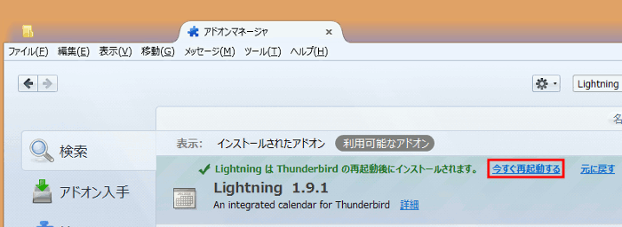 - インストールしたアドオンを有効にするためにThunderbirdを再起動します。