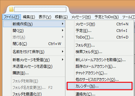 - 新しいカレンダーを作成します。(メニューが表示されない場合はAltキーを押してください。)