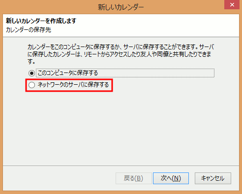 - ネットワークのサーバに保存するを選び進みます。