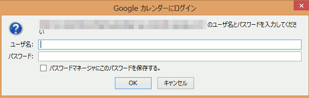 - Googleアカウントのユーザ名、パスワードの入力画面が表示されるので、入力しOKボタンを押します。