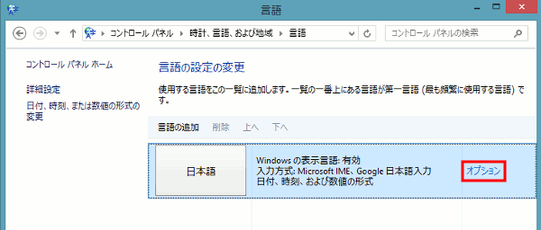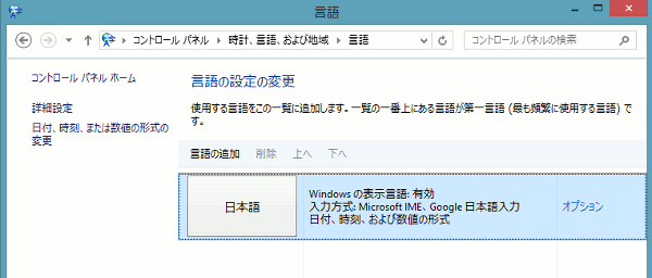 Google日本語入力のプロパティ画面を表示したい場合は、まずは上記の言語設定変更画面を表示します。