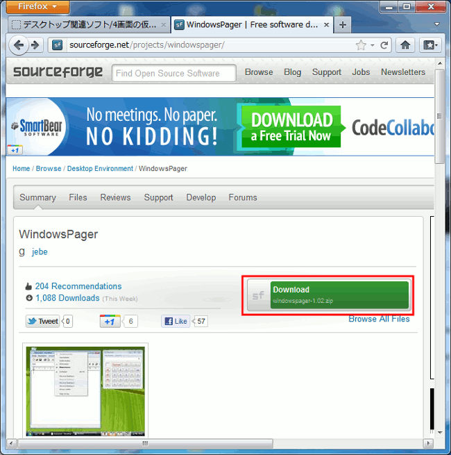 本記事の作成時点(2011/12/18)のダウンロードしたファイル名はwindowspager-1.02.zipでした。