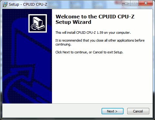- CPU-Zのインストーラが起動します。