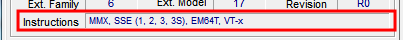 CPU-ZのスクリーンショットでInstructionsの部分を確認します。