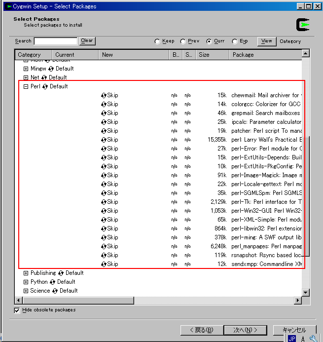デフォルトでCygwinをインストールするとperlもインストールされていませんでした。