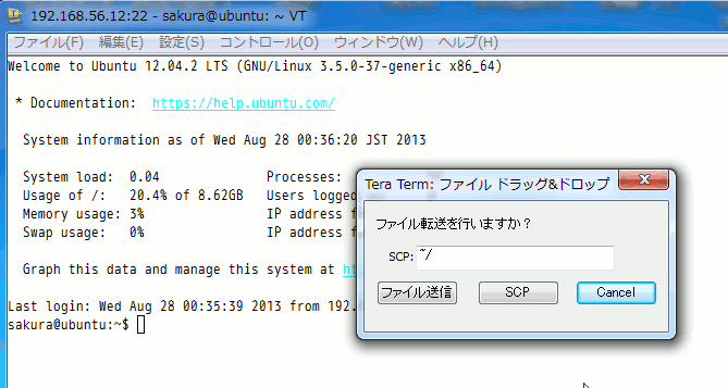 - id_rsa.pubをTera Termの画面にドラッグ・アンド・ドロップするとscpできます。