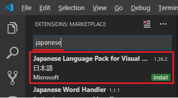 - japaneseと入力すると、Microsoftの日本語ランゲージパックが表示されるので、