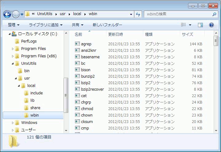 ダウンロードしたUnxUtils.zipを解凍(展開)するだけです。