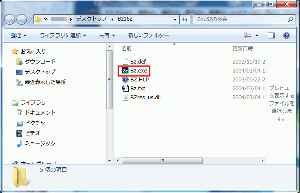 - ダウンロードするとBz162.zip(本記事作成時点のファイル名)が保存されます。