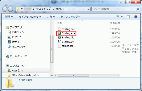 - ダウンロードするとstir131.lzh(本記事作成時点のファイル名)が保存されます。