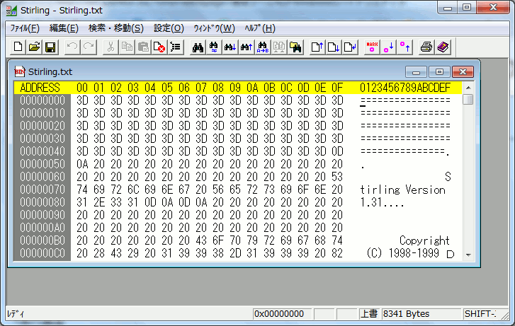 Stirling に添付されていたStirling.txtをStirling.exeで開いた時のスクリーンショットです。