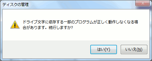 ドライブ文字に依存する一部のプログラムが正しく動作しなくなる場合があります。続行しますか?と表示されます。