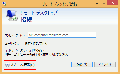 リモートデスクトップ接続を起動し以下の設定を行います。