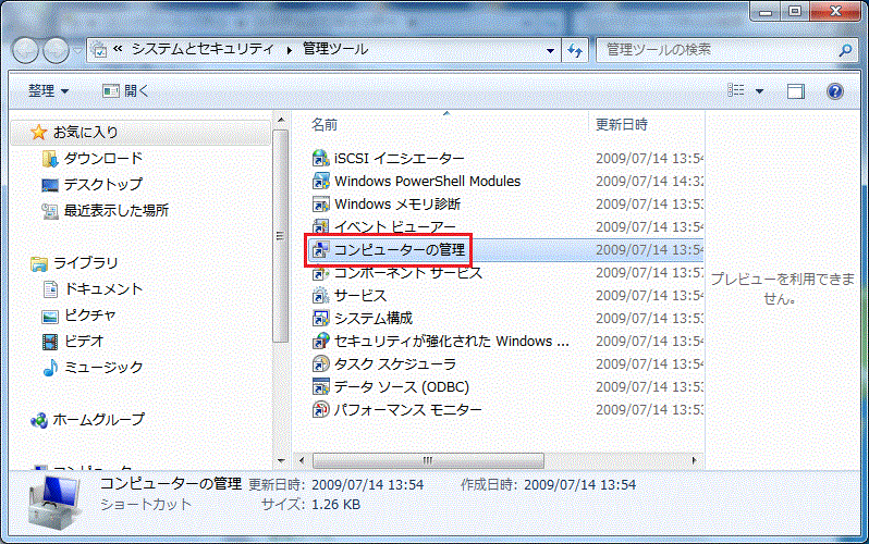 以下の操作でコンピュータの管理を表示します。