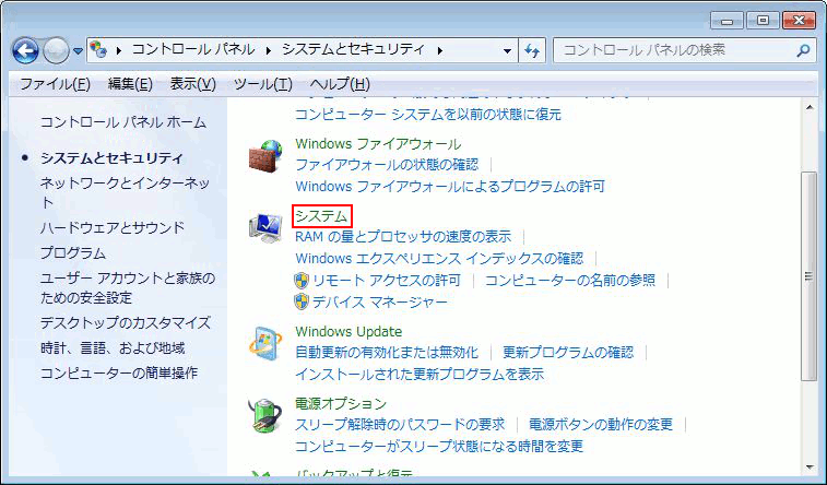- システムとセキュリティをクリック