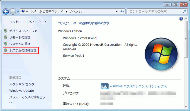 - システムの詳細設定をクリック
