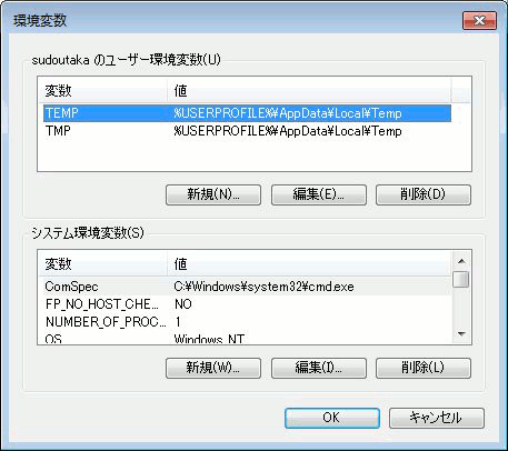 Windowsの環境変数の設定画面†