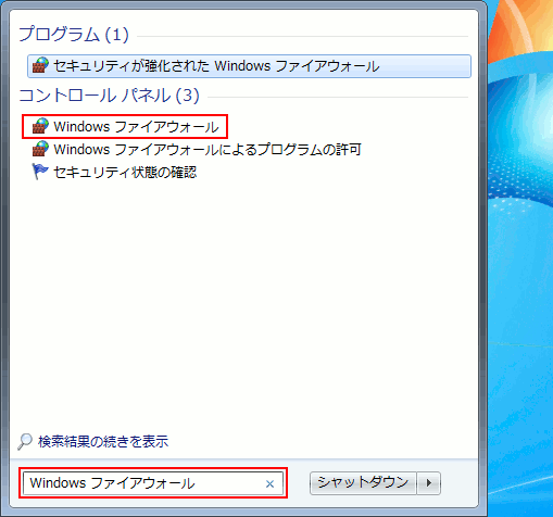 検索してWindowsファイアウォールの設定画面を表示する†