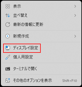 1つは、デスクトップ上で右クリックし表示される右クリックメニューからの表示