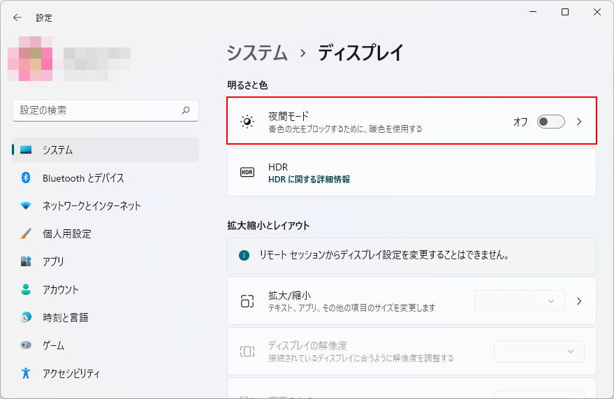 目が疲れる方、目の疲れ軽減に夜間モードが役に立つかもしれません。 Windows11で夜間モードに変更する手順を以下に記します。