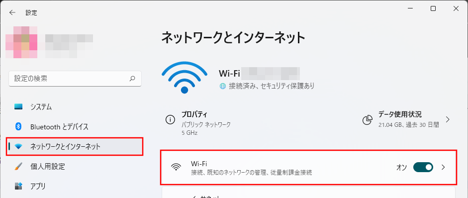 - Wi-Fiをクリックします。