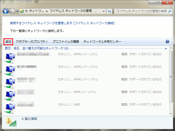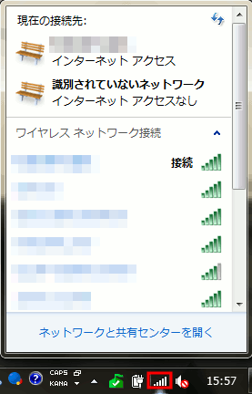 Windows7でステルスモードのSSIDの無線アクセスポイントに接続する手順を以下に記します。