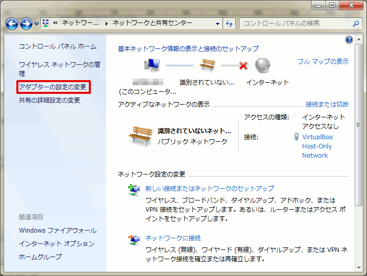 Windows 7になってからWindows 7と異なり、ネットワークアダプタの画面を表示する手順(場所)が変更されています。