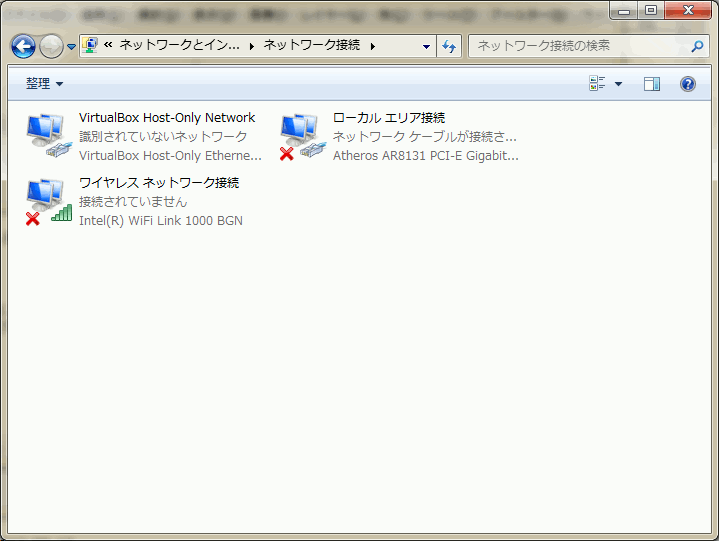 下図の通り、PCに存在するネットワークアダプターが表示されます。