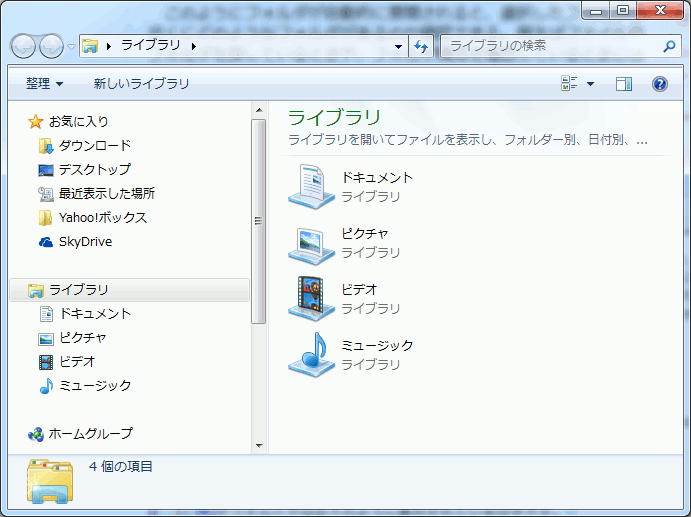 これを、Windows XPやWindows Vistaのエクスプローラーの表示ようにWindows7で変更する方法を記します。
