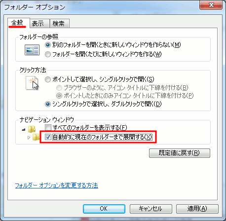 しかし、デフォルトの設定ではWindows7では、フォルダーがツリー展開された状態で表示されません。