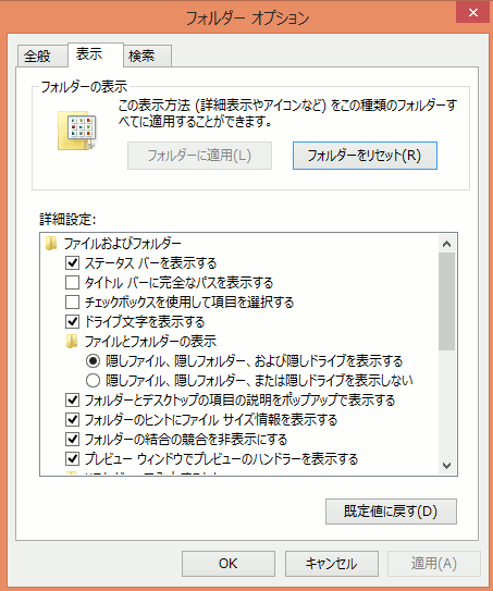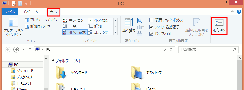 以上、Windows8のフォルダーオプション画面の表示操作手順でした。
