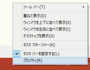 - タスクバーで右クリックしプロパティをクリックします。